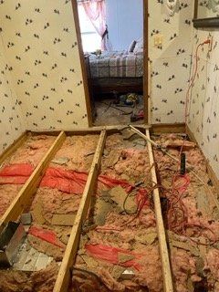 The July Missionary Saturday crew worked at Matt's home to complete the work to fix a structure problem. A sagging frame was repaired in the basement and insulation was installed. Thanks to Santiago, Sergio and Tito for volunteering their time and talent.