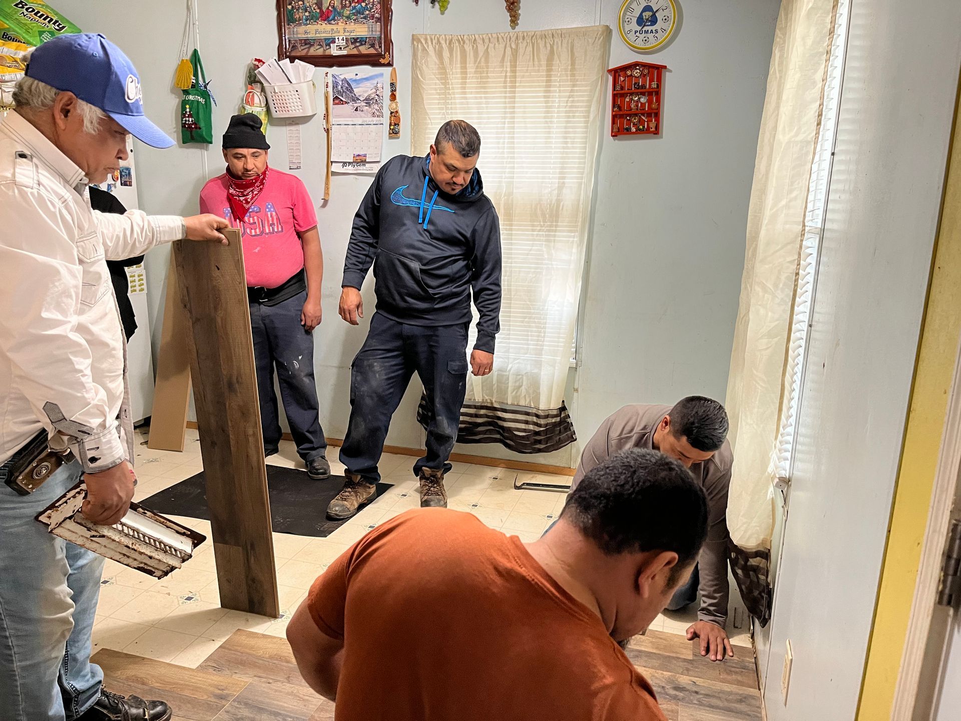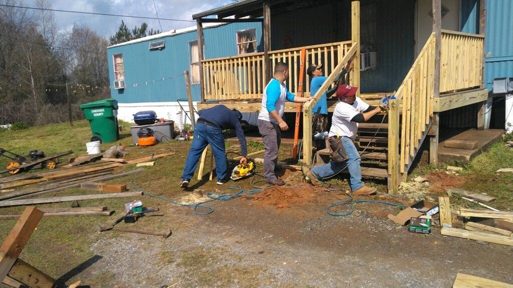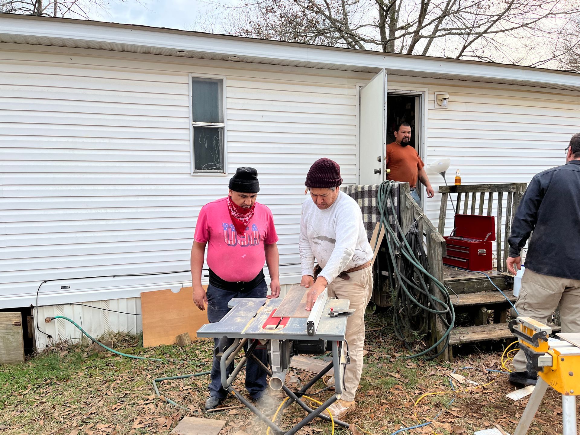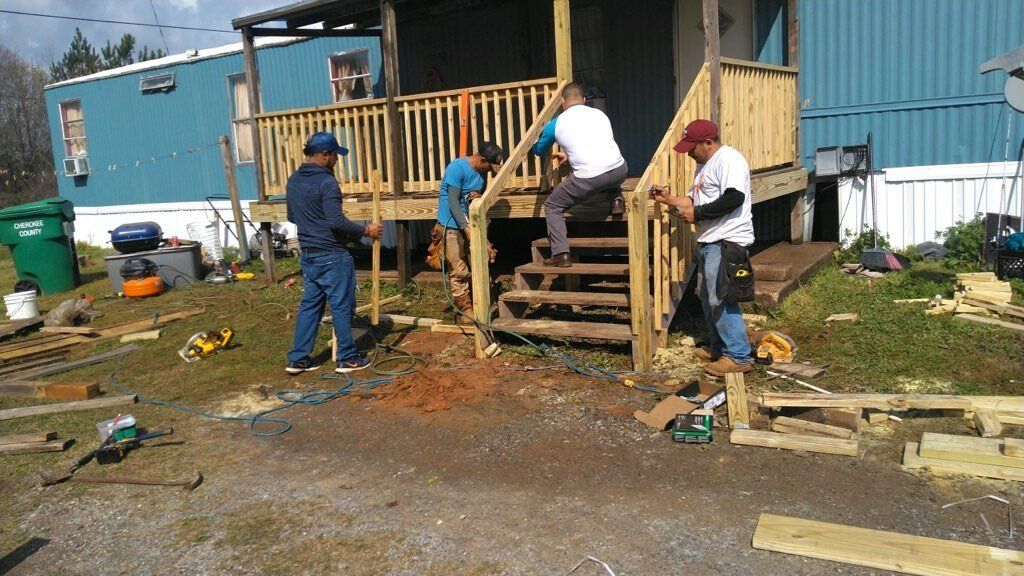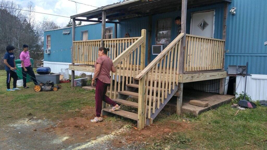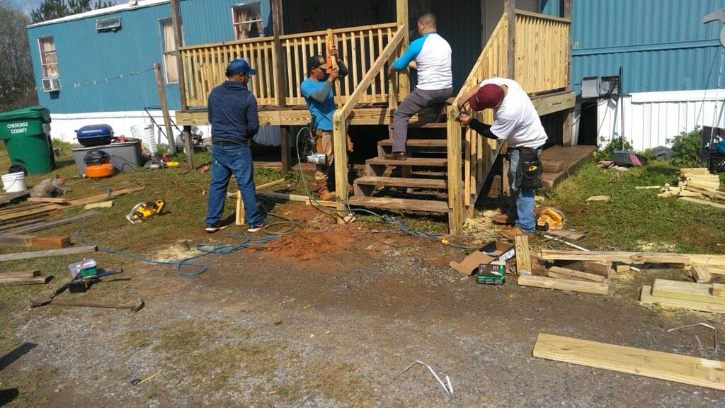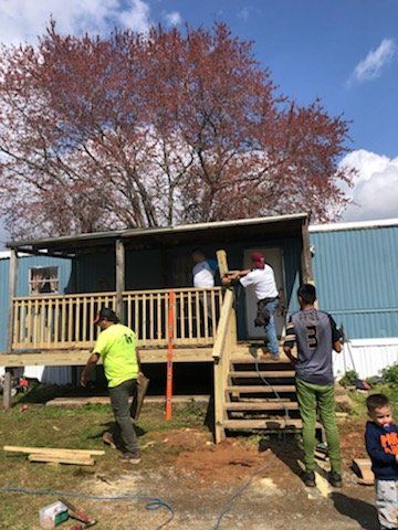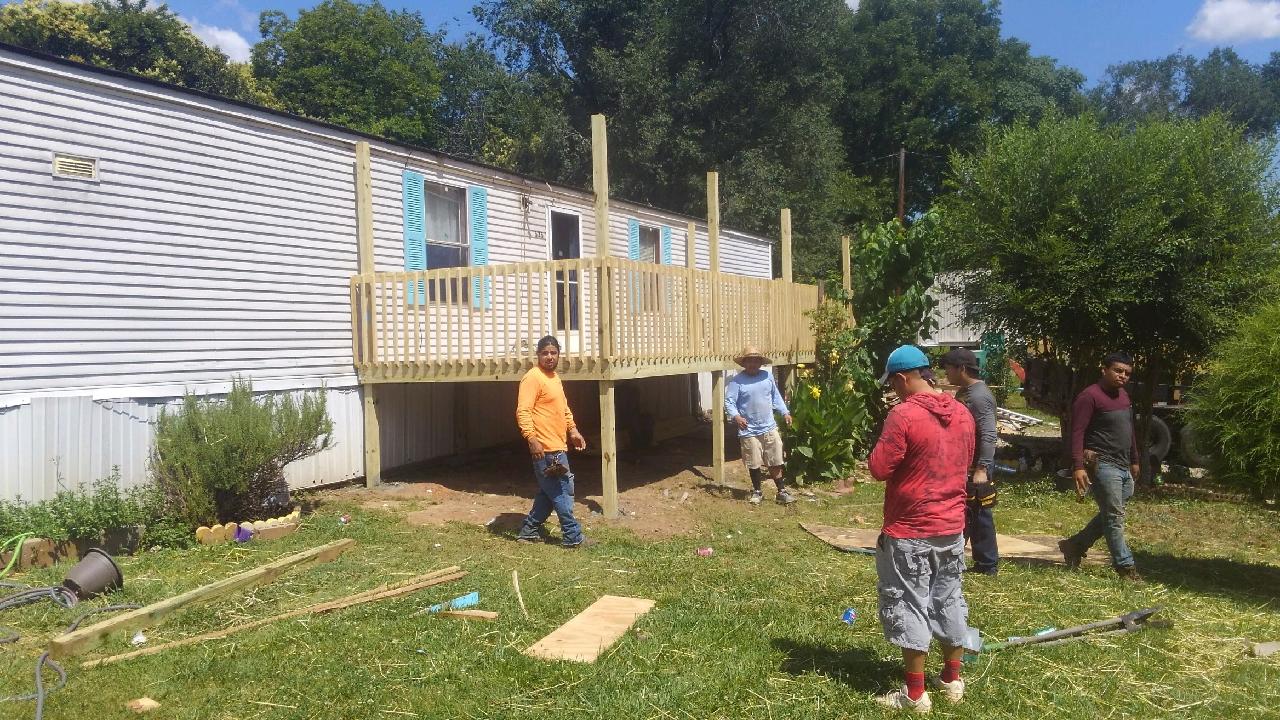 Missionary Saturday volunteers repair the porch of Martha Negrete's home.