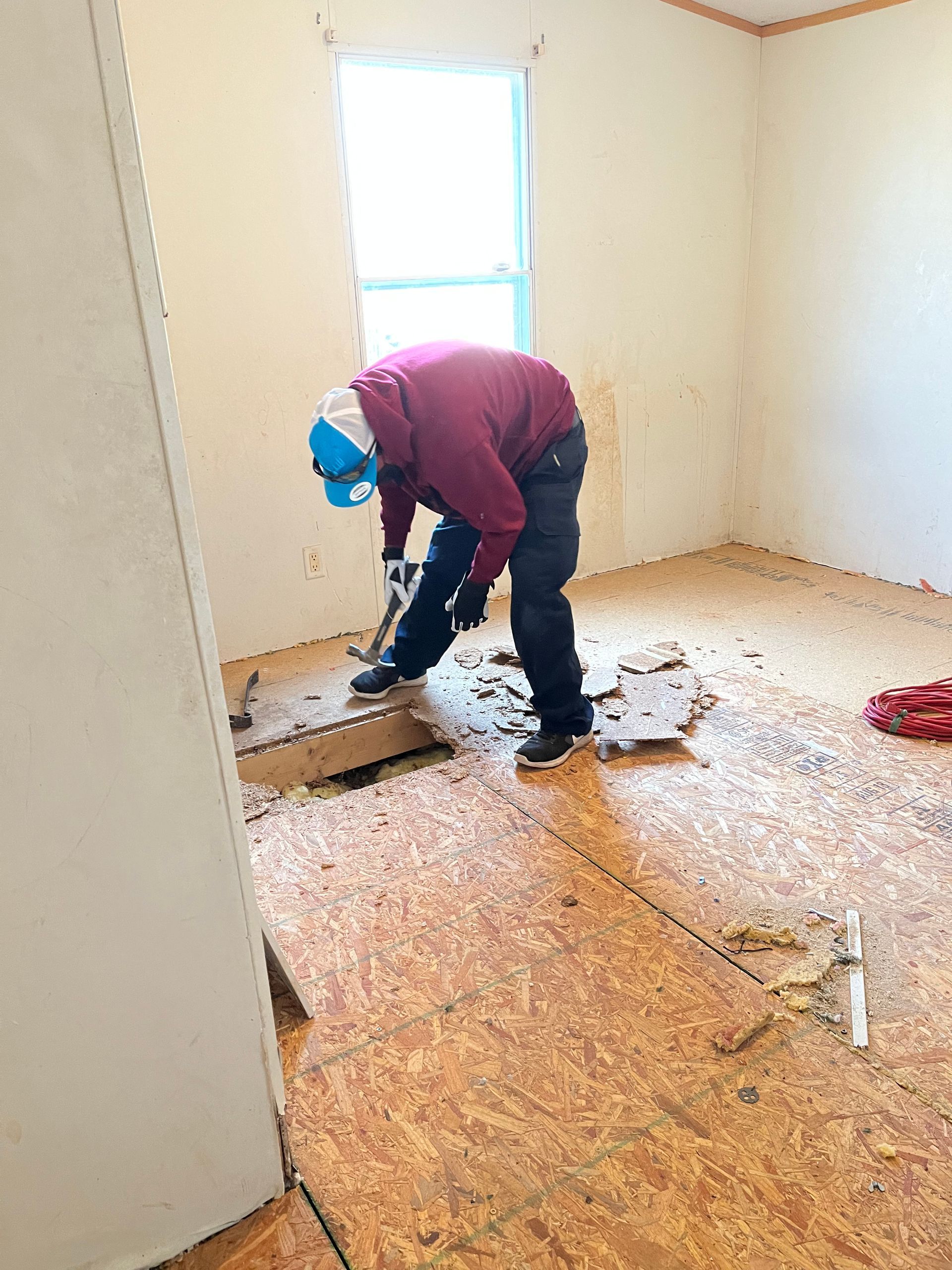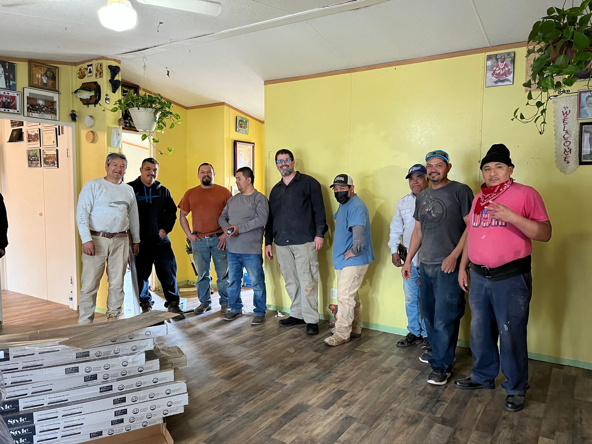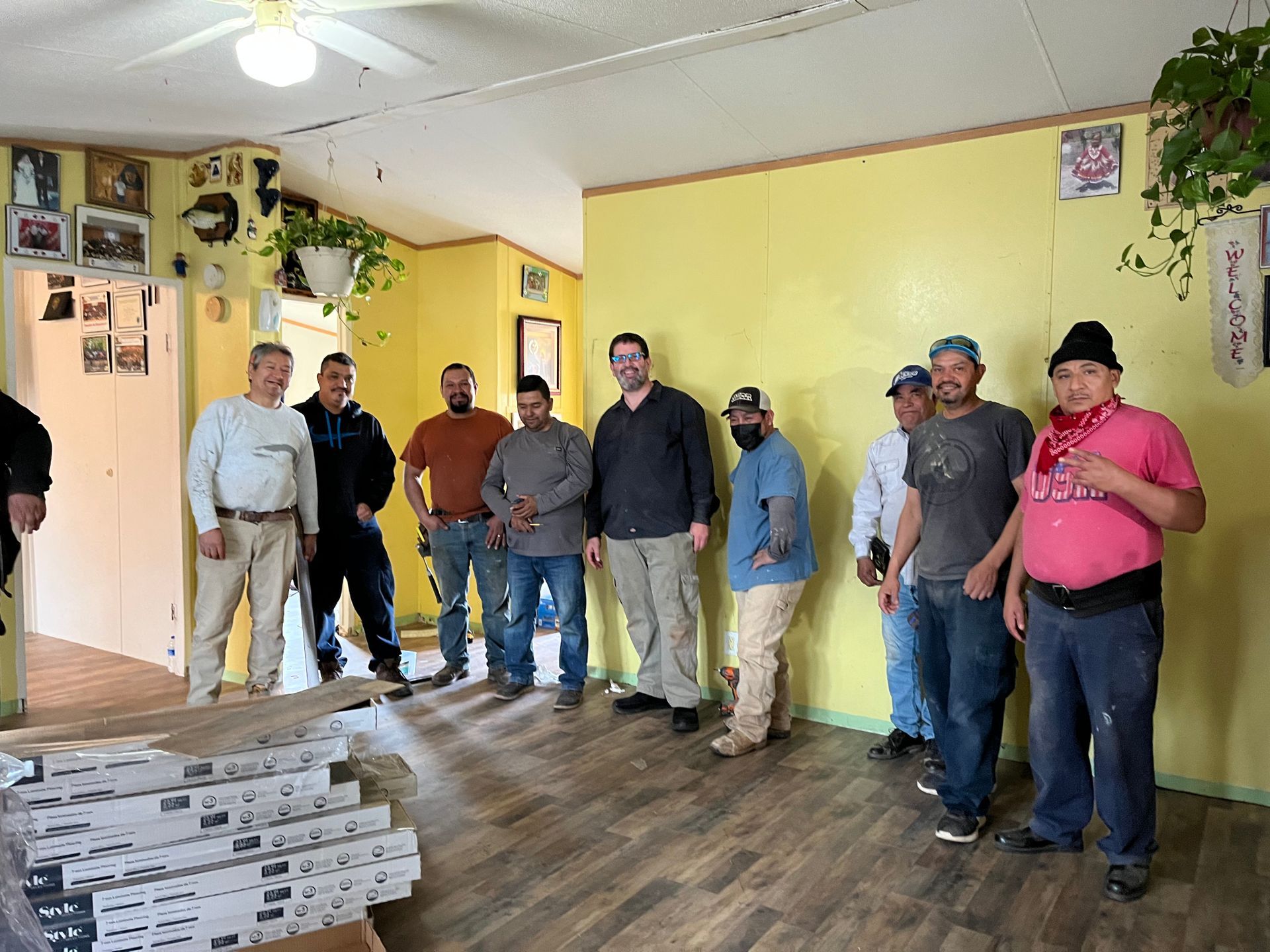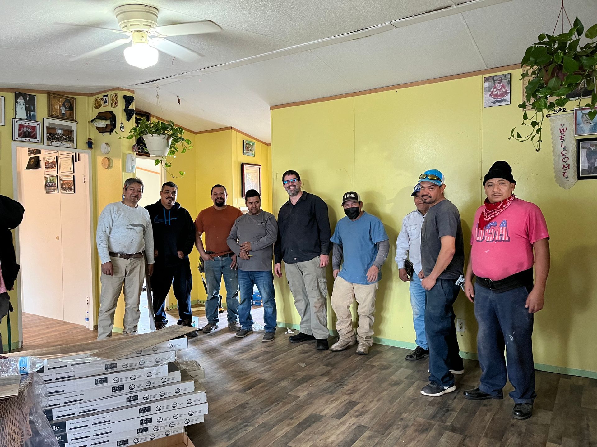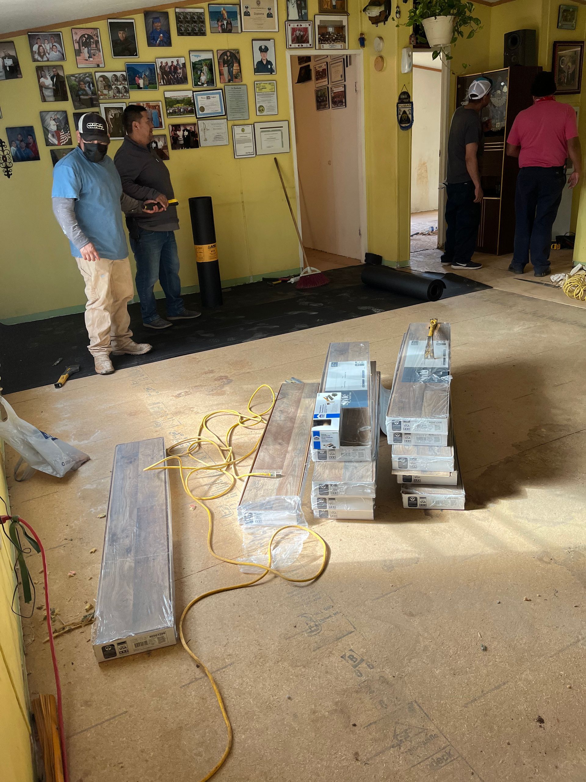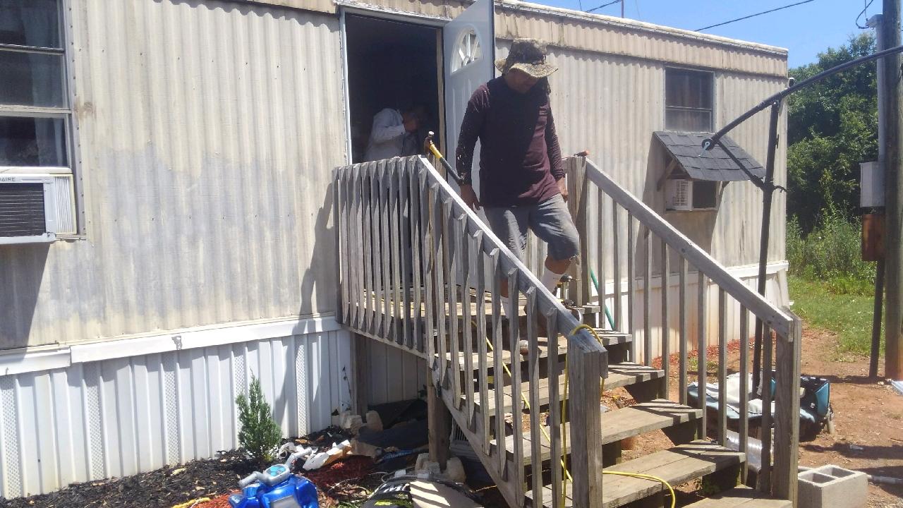 Missionary Saturday volunteers repair the porch of Martha Negrete's home.