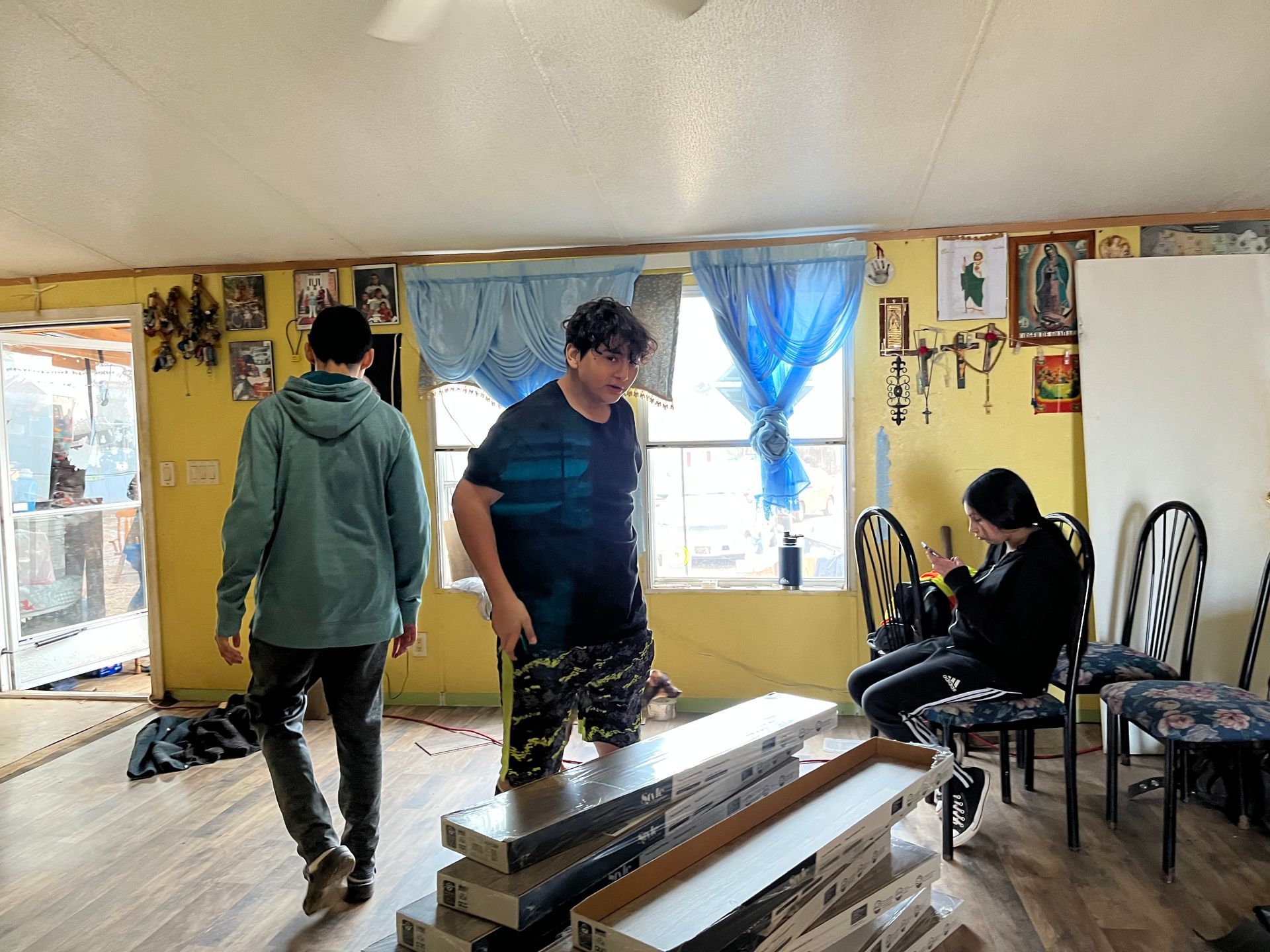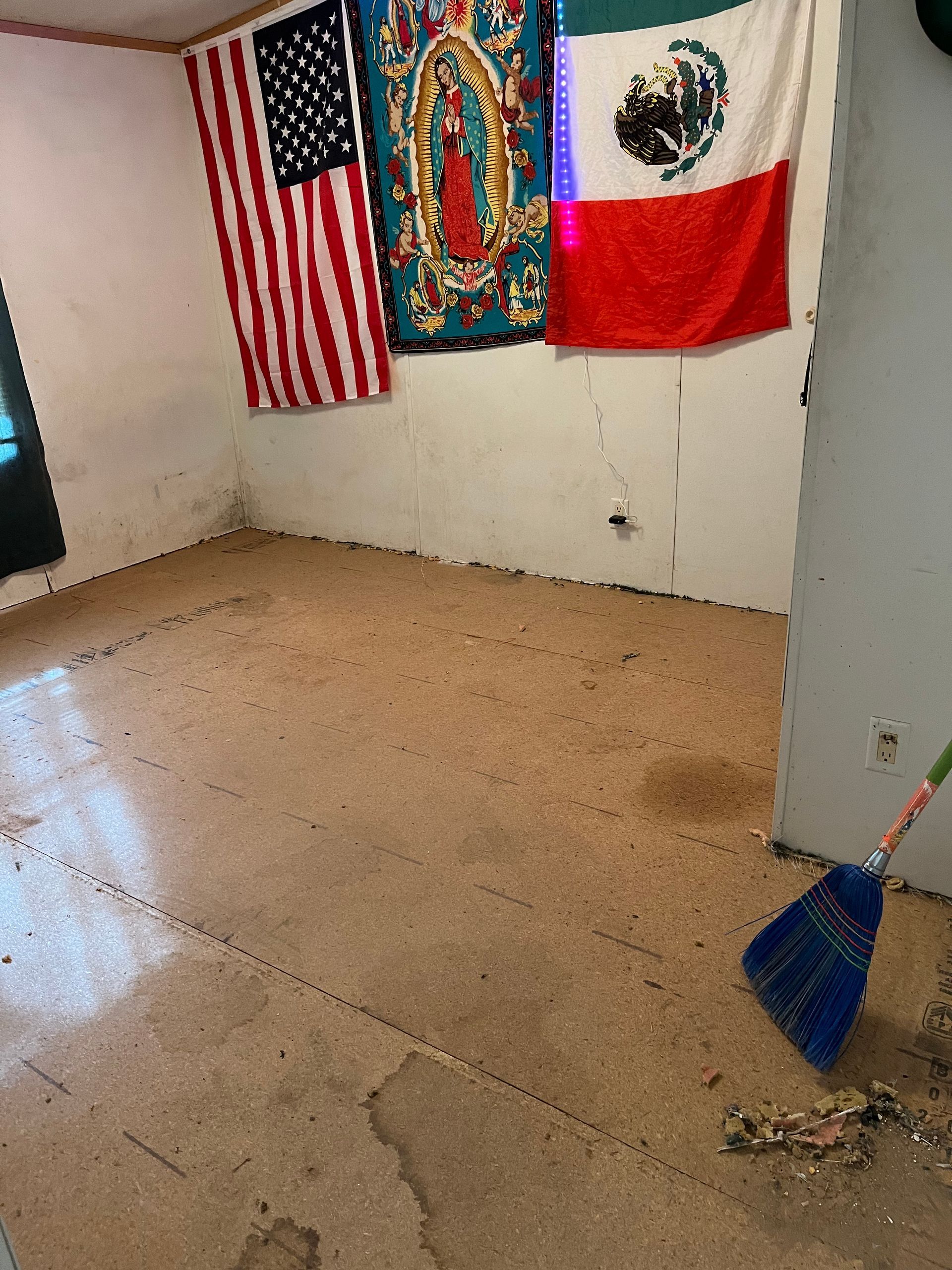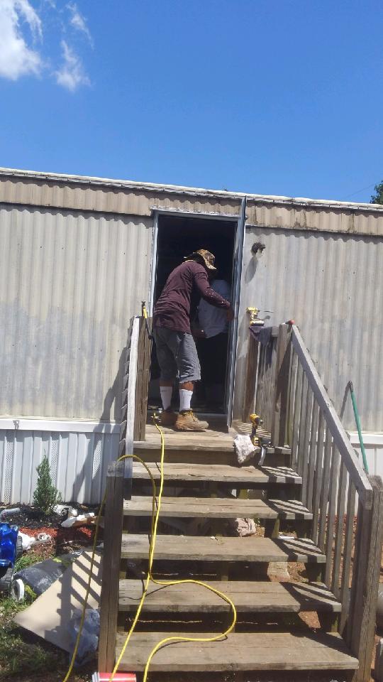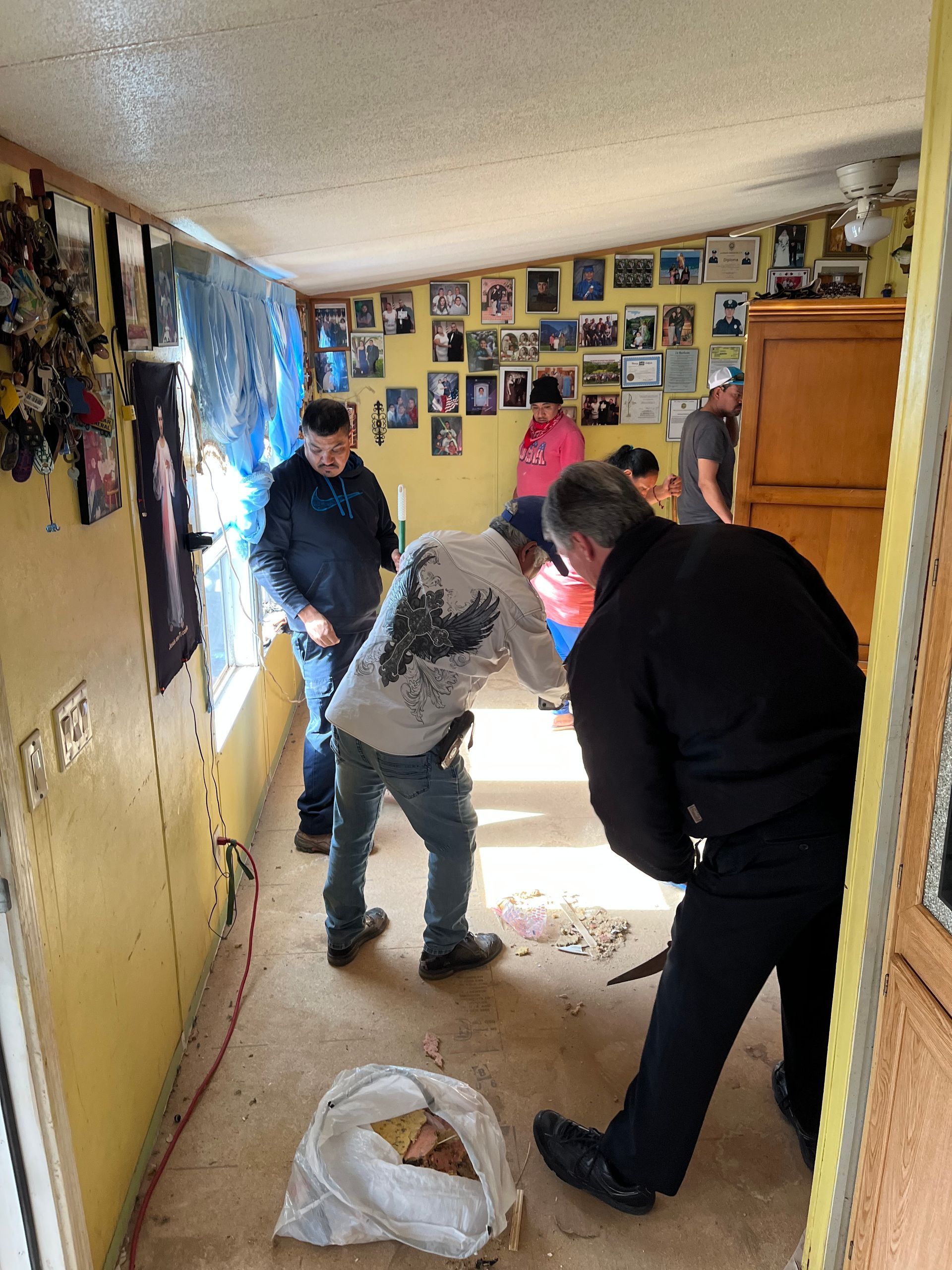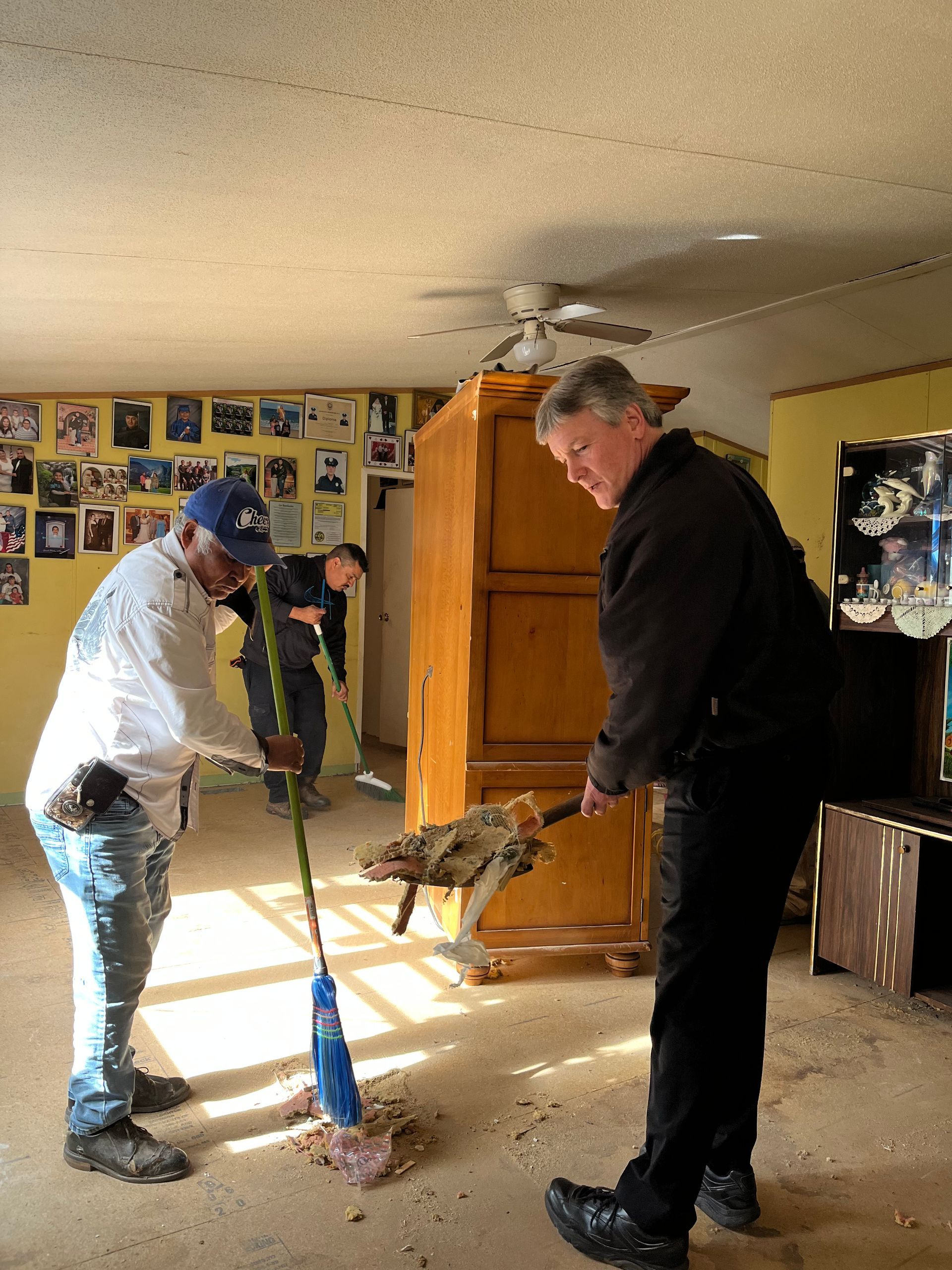 Missionary Saturday volunteers repair the porch of Martha Negrete's home.