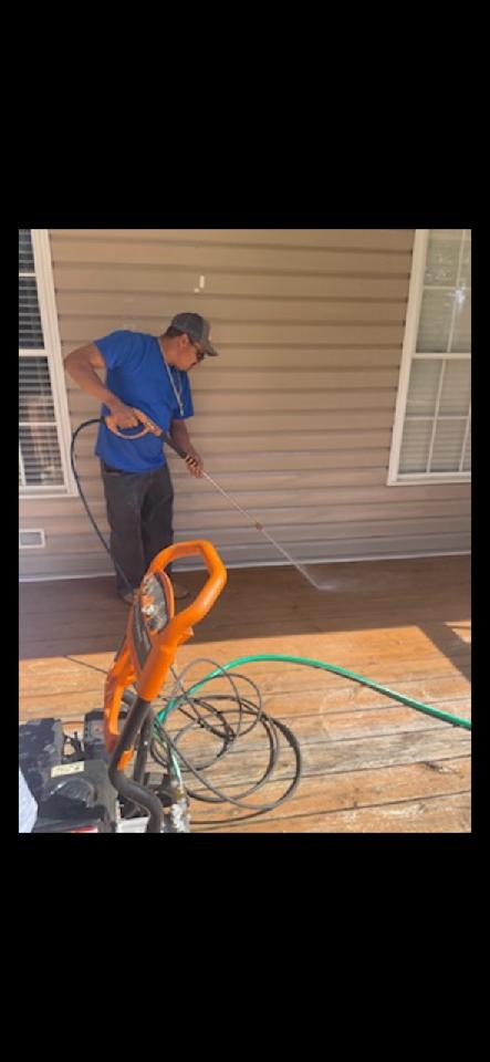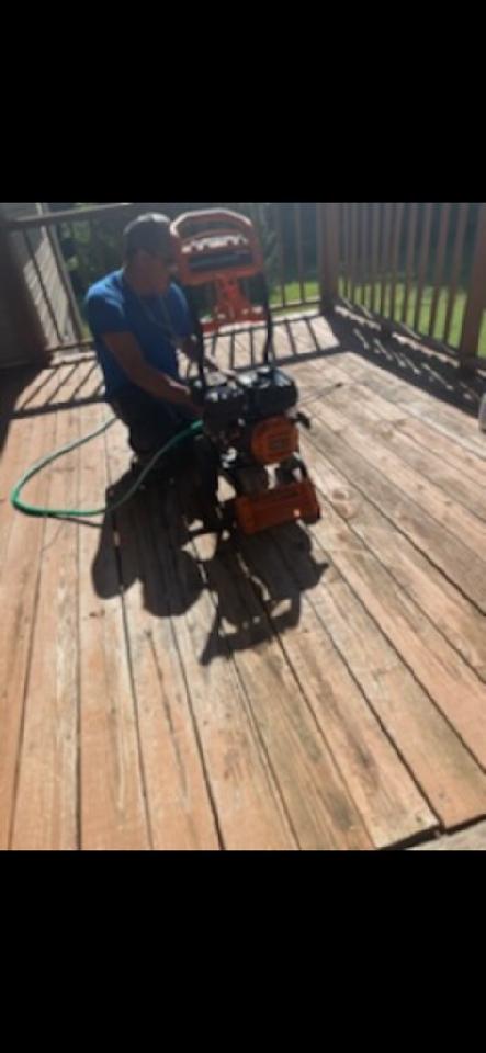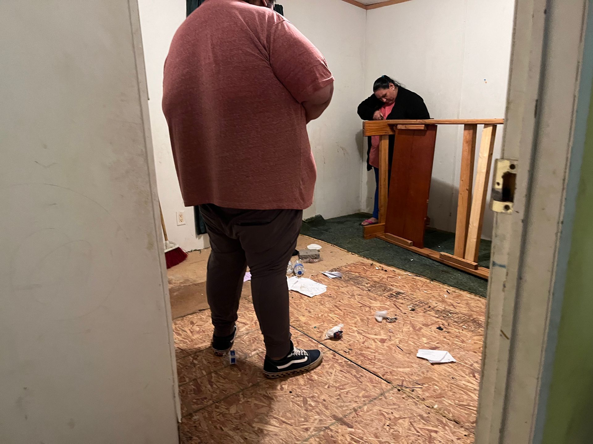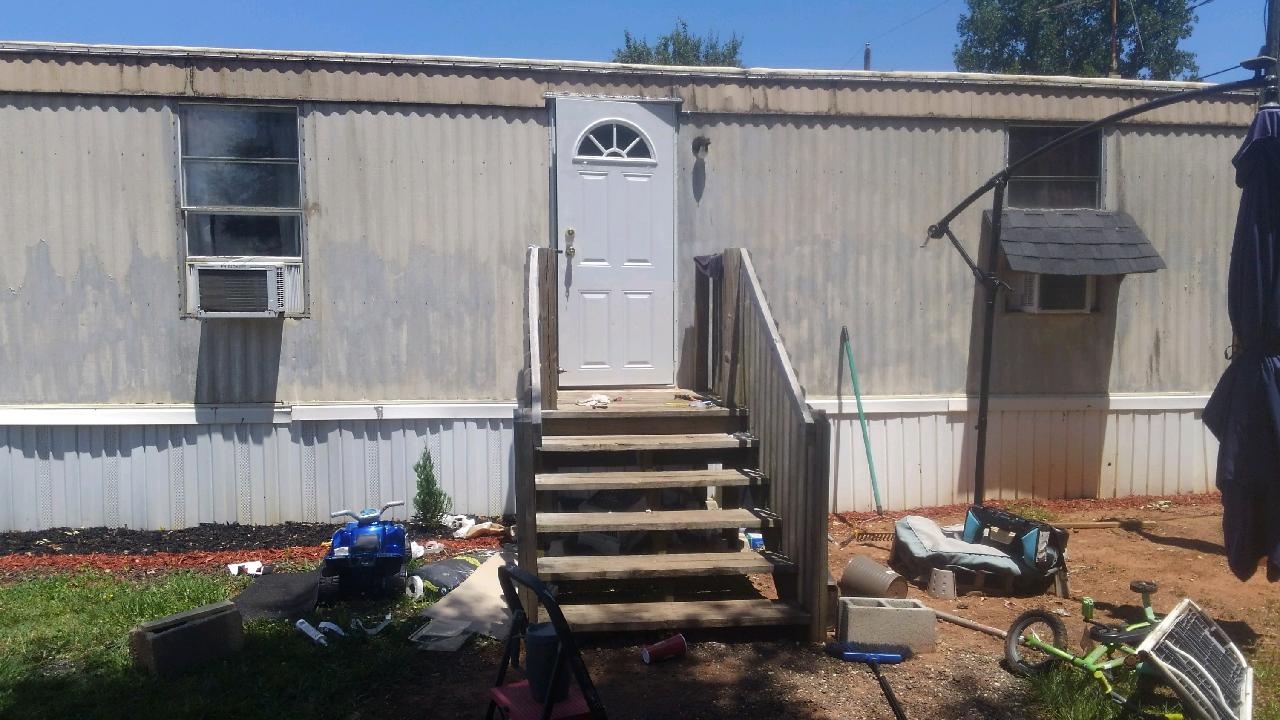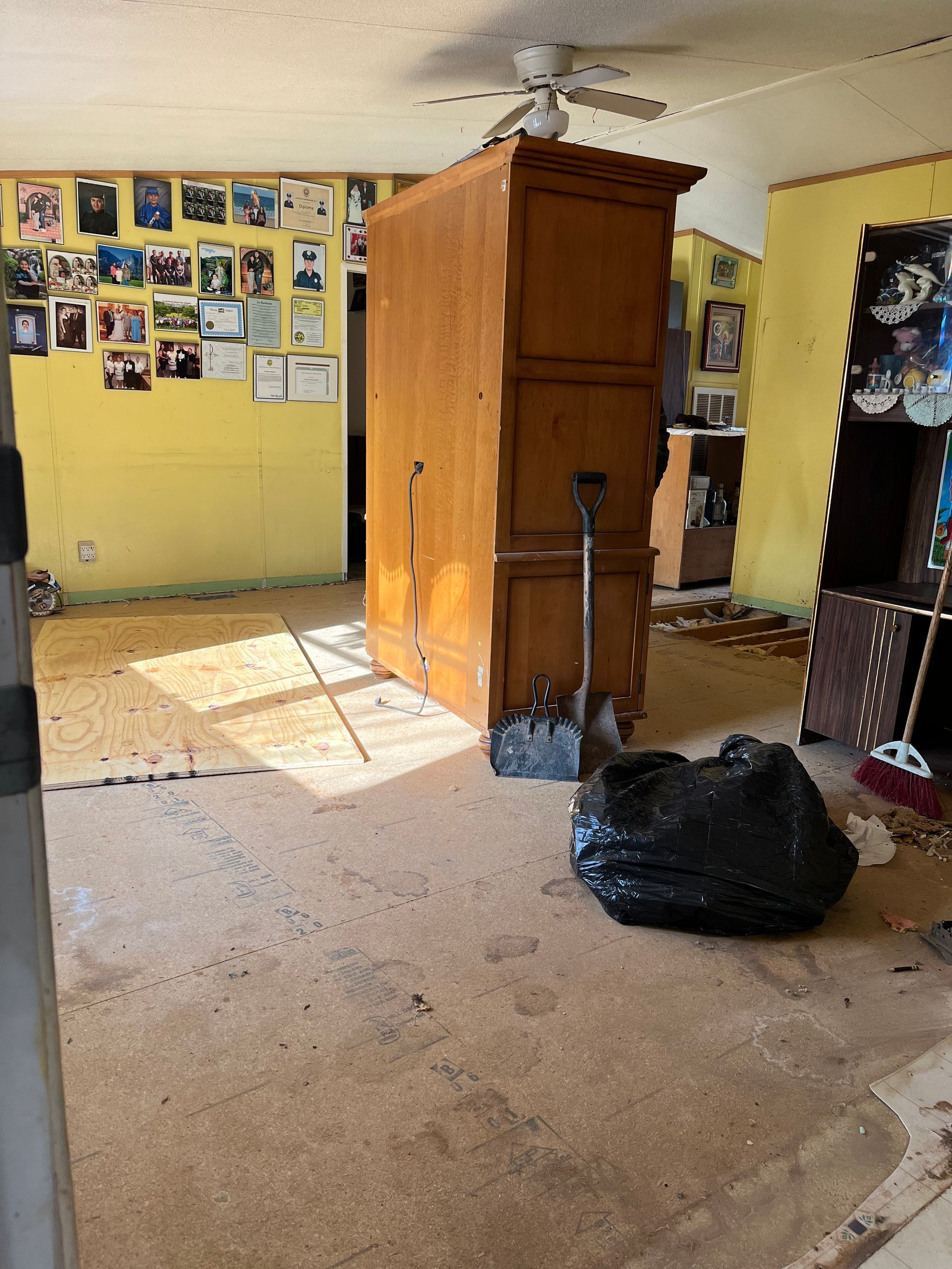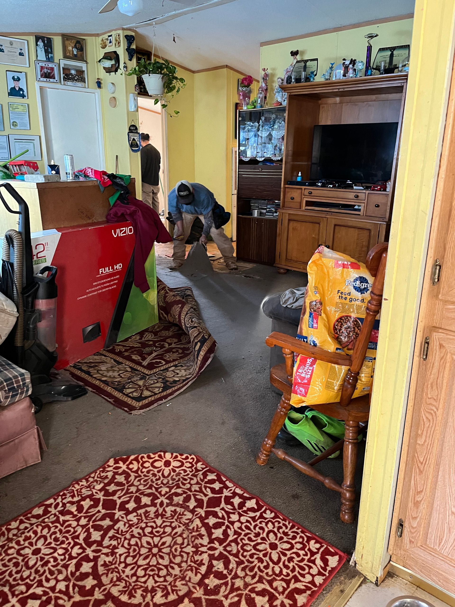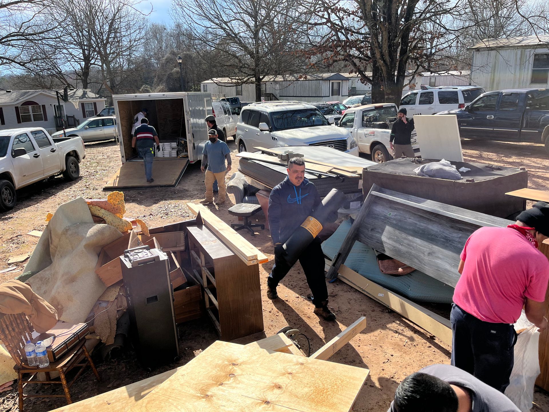 Missionary Saturday volunteers repair the porch of Martha Negrete's home.
