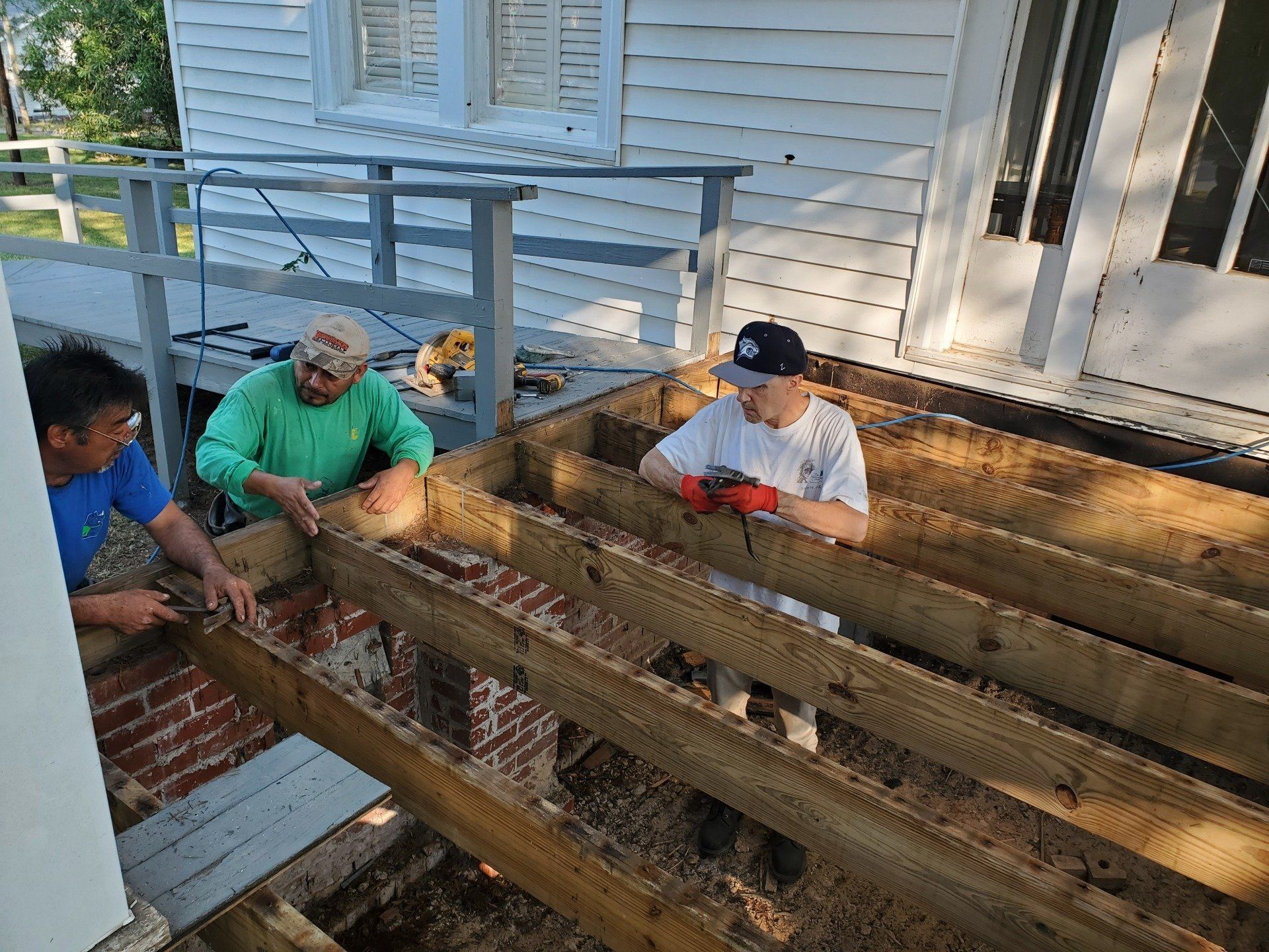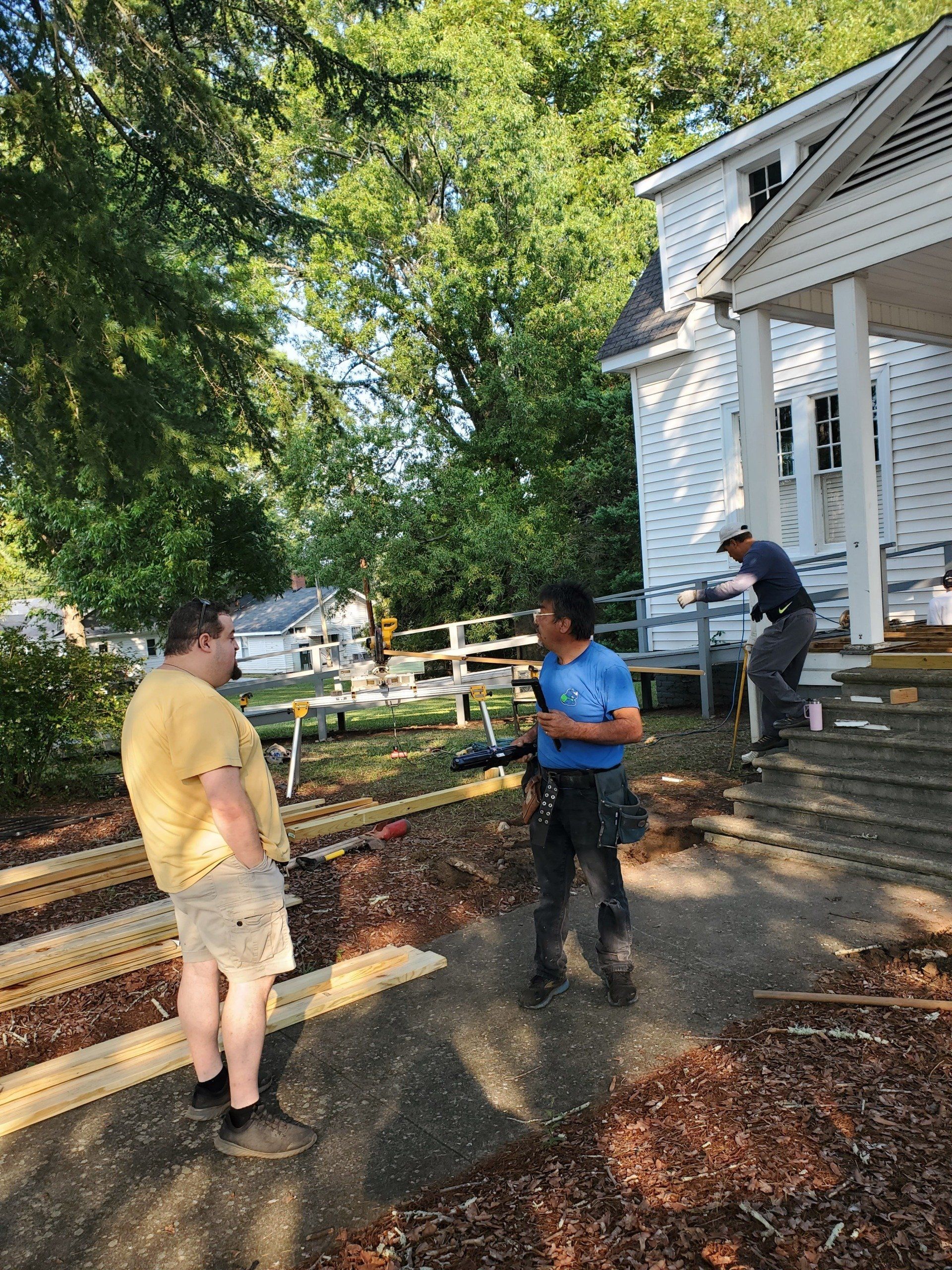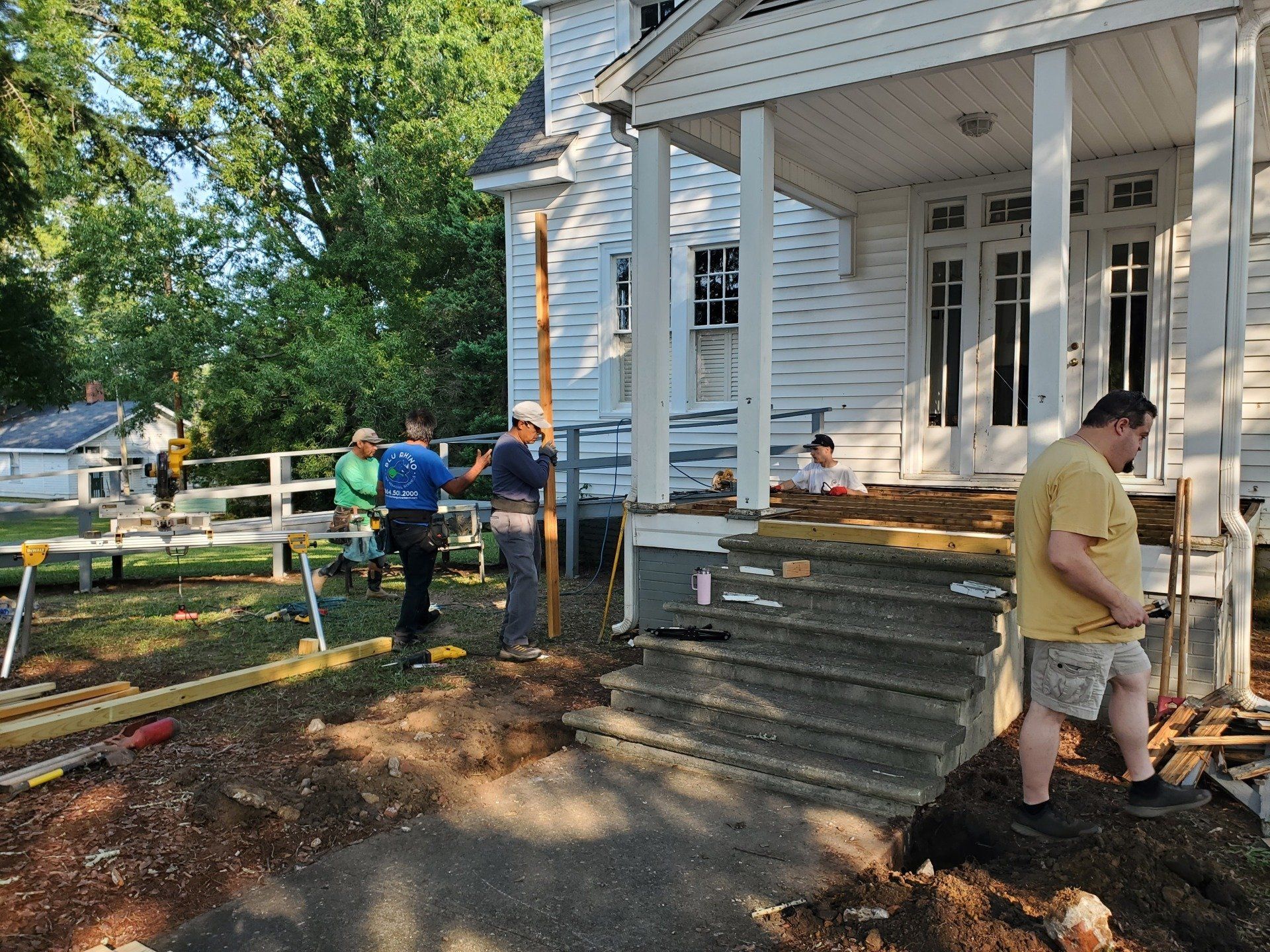 Volunteers replaced the porch of the Seton House at St. Augustine Parish.