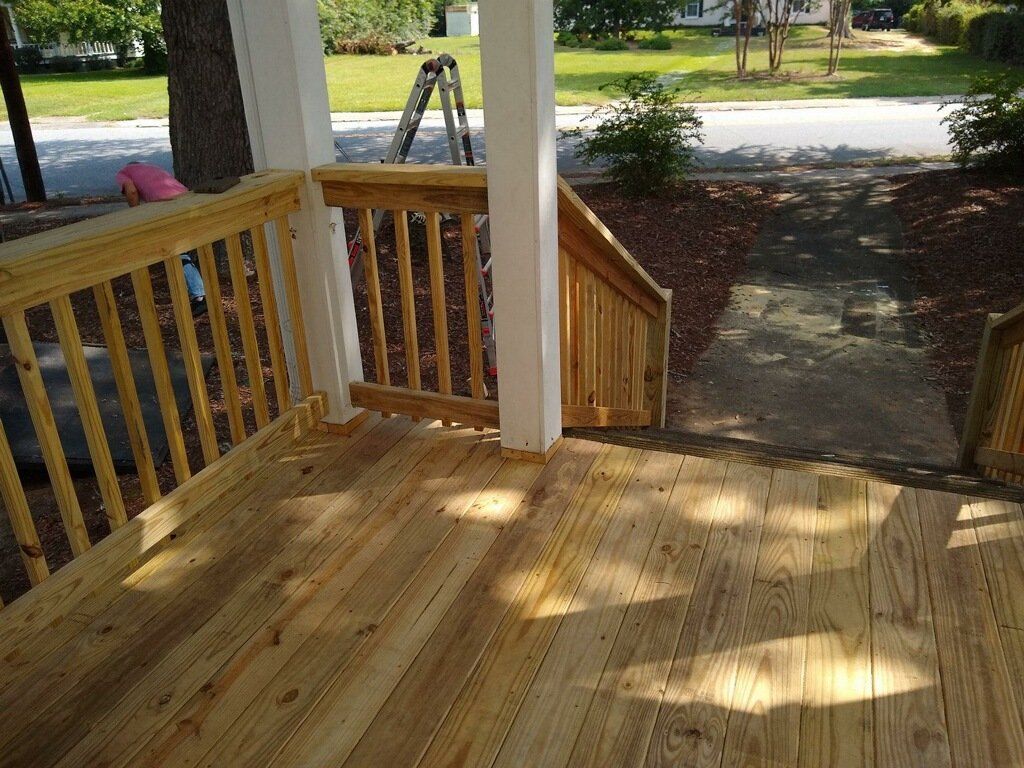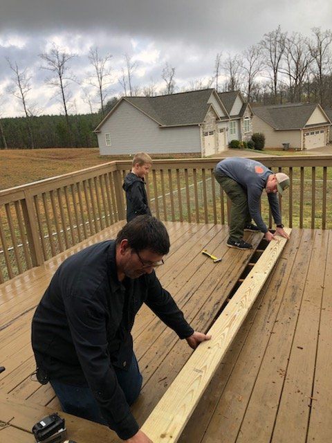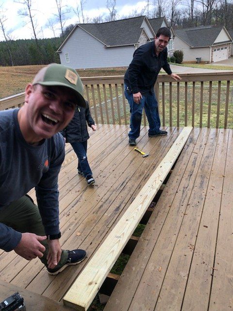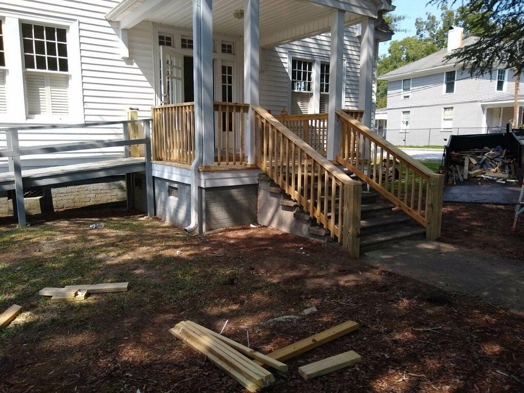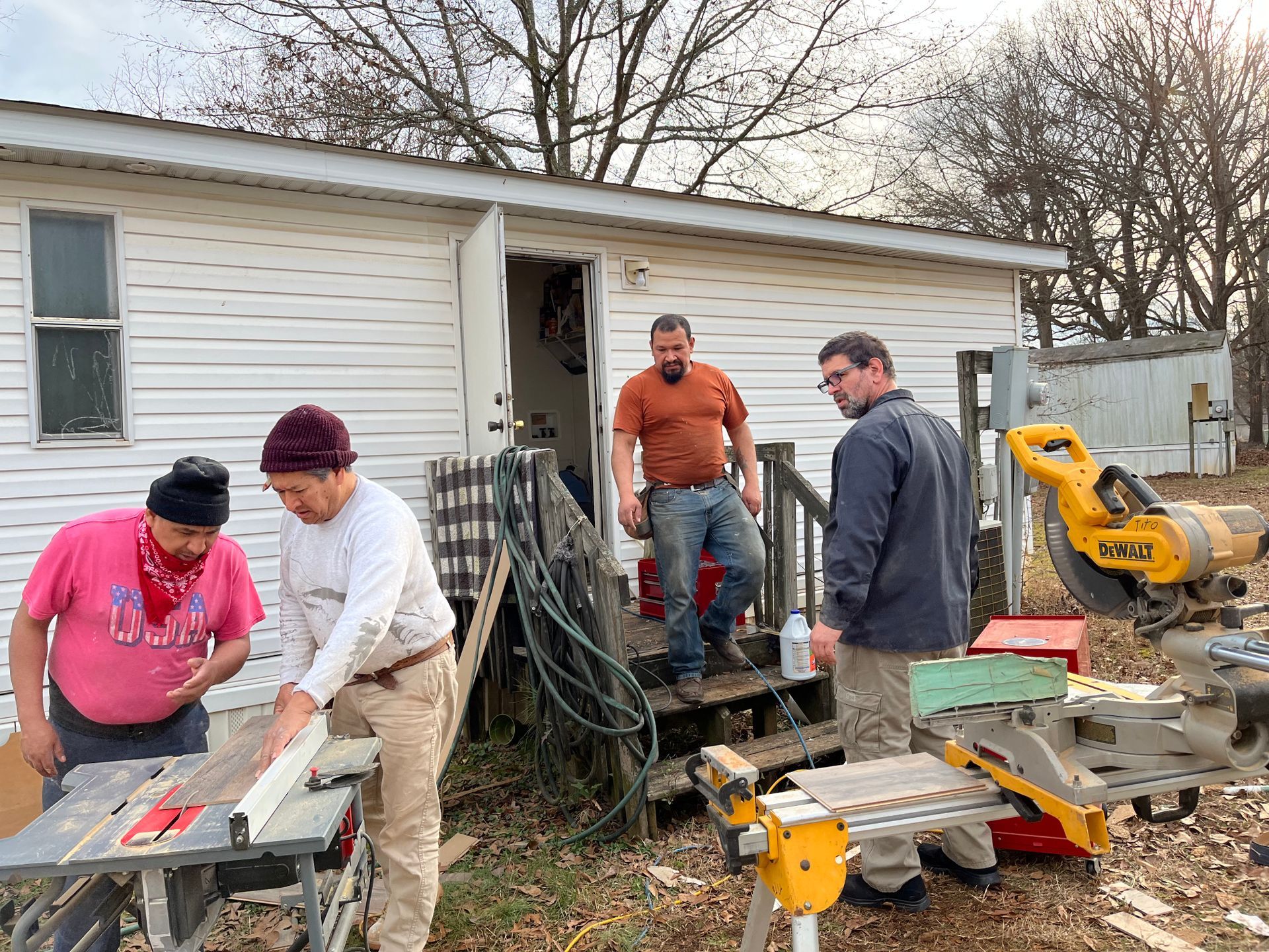 Volunteers replaced the porch of the Seton House at St. Augustine Parish.