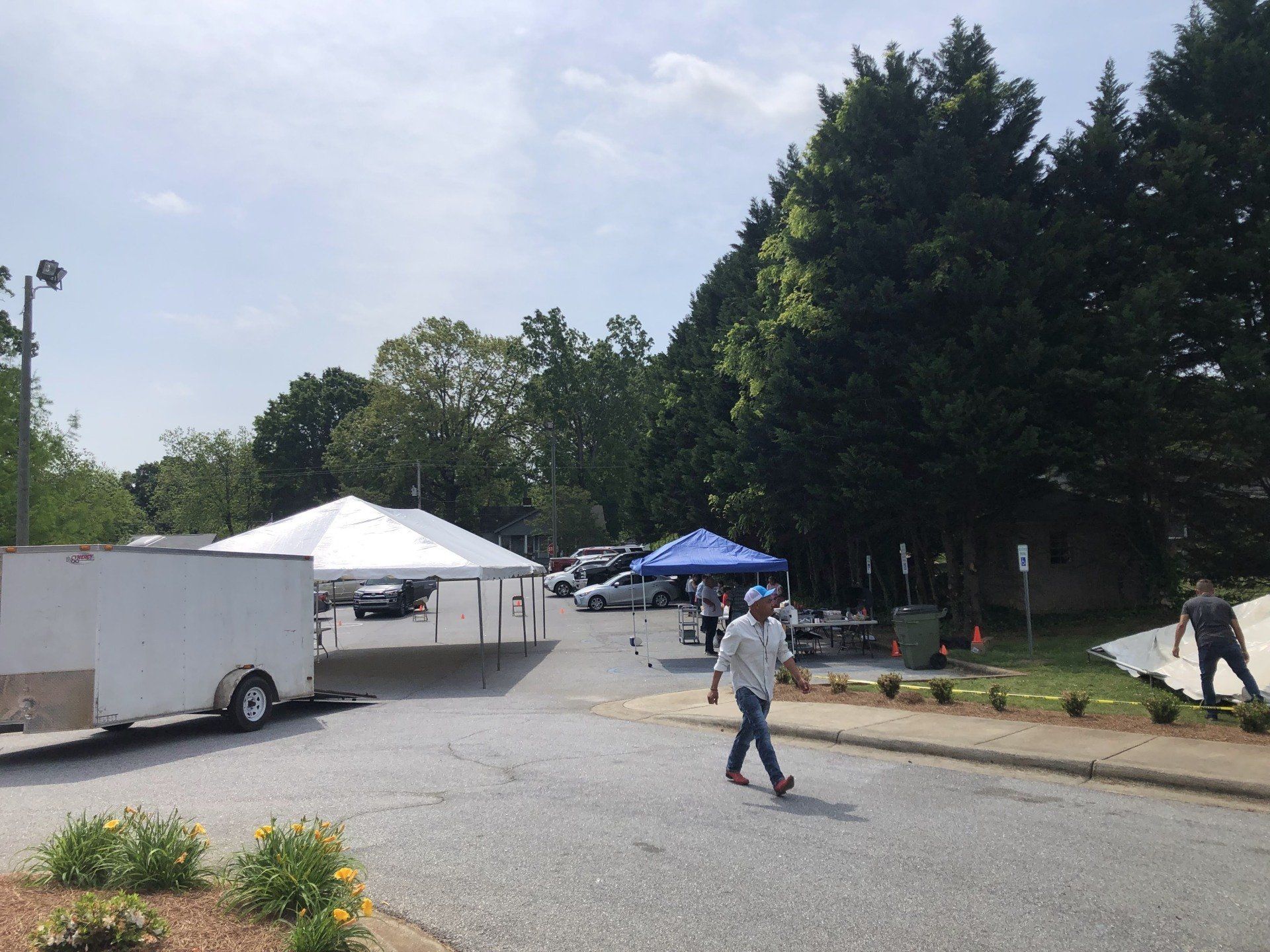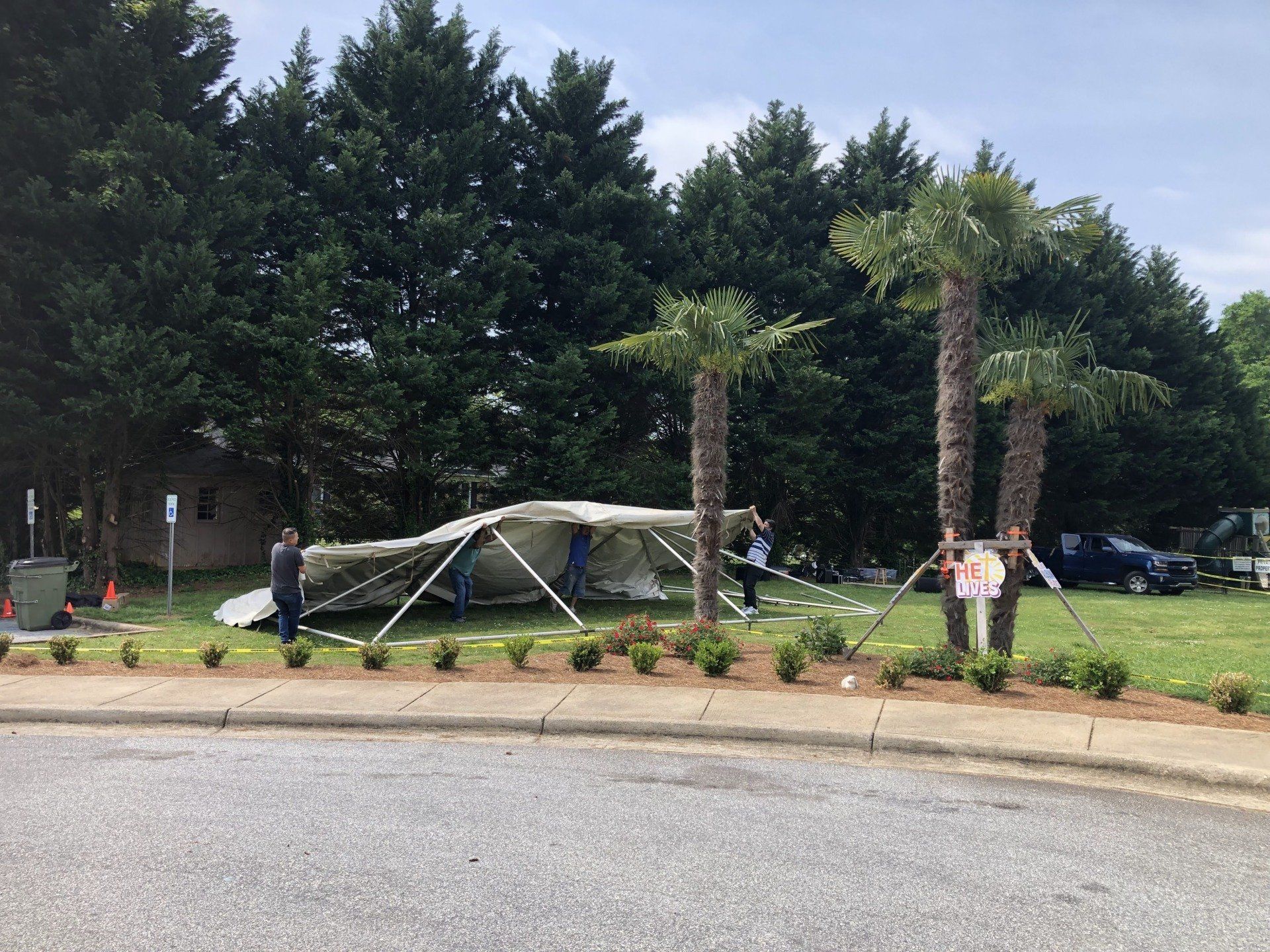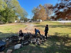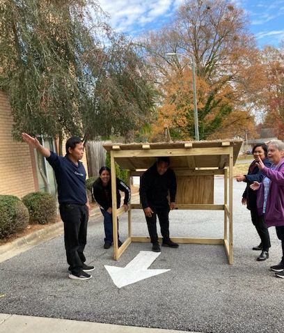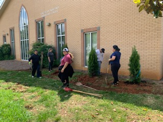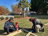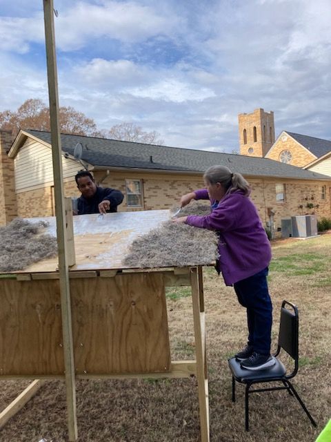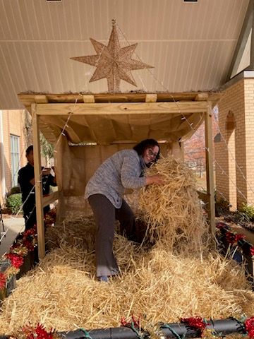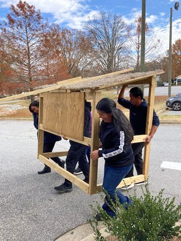 On Saturday, November 19, Missionary Saturday Volunteers worked to beautify the grounds for the holiday season and built the manger for the Gaffney Christmas Parade on December 2, 2022.