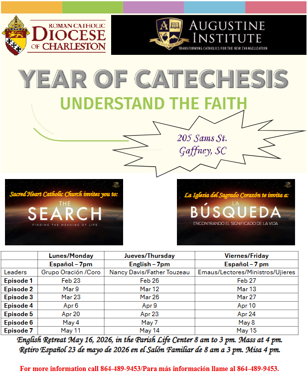 Detailed information about this program is available on the Dioceses of Charleston website https://charlestondiocese.org/hispanic-ministry/escuela-de-la-fe-cristo-maestro/.